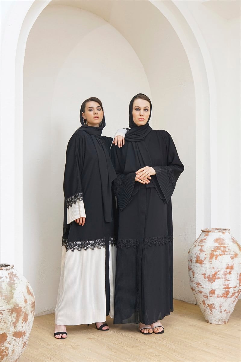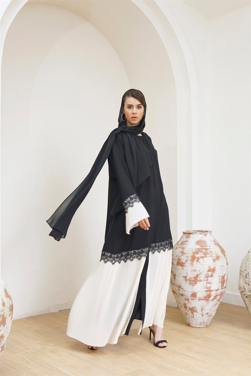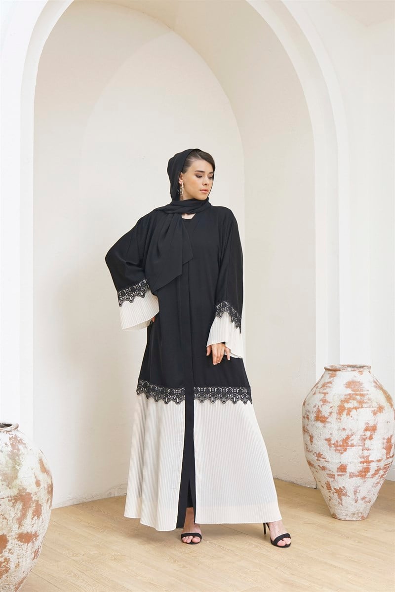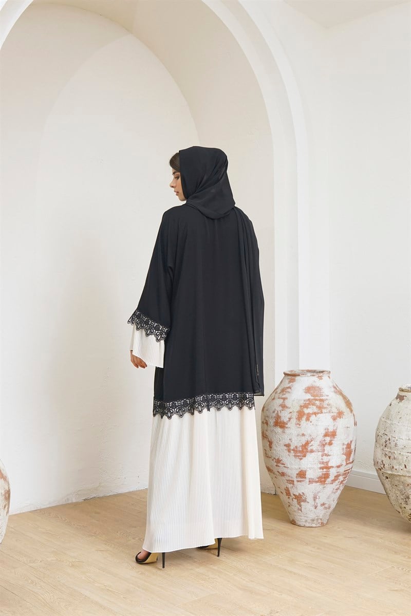 PLEATED ABAYA- CREAM